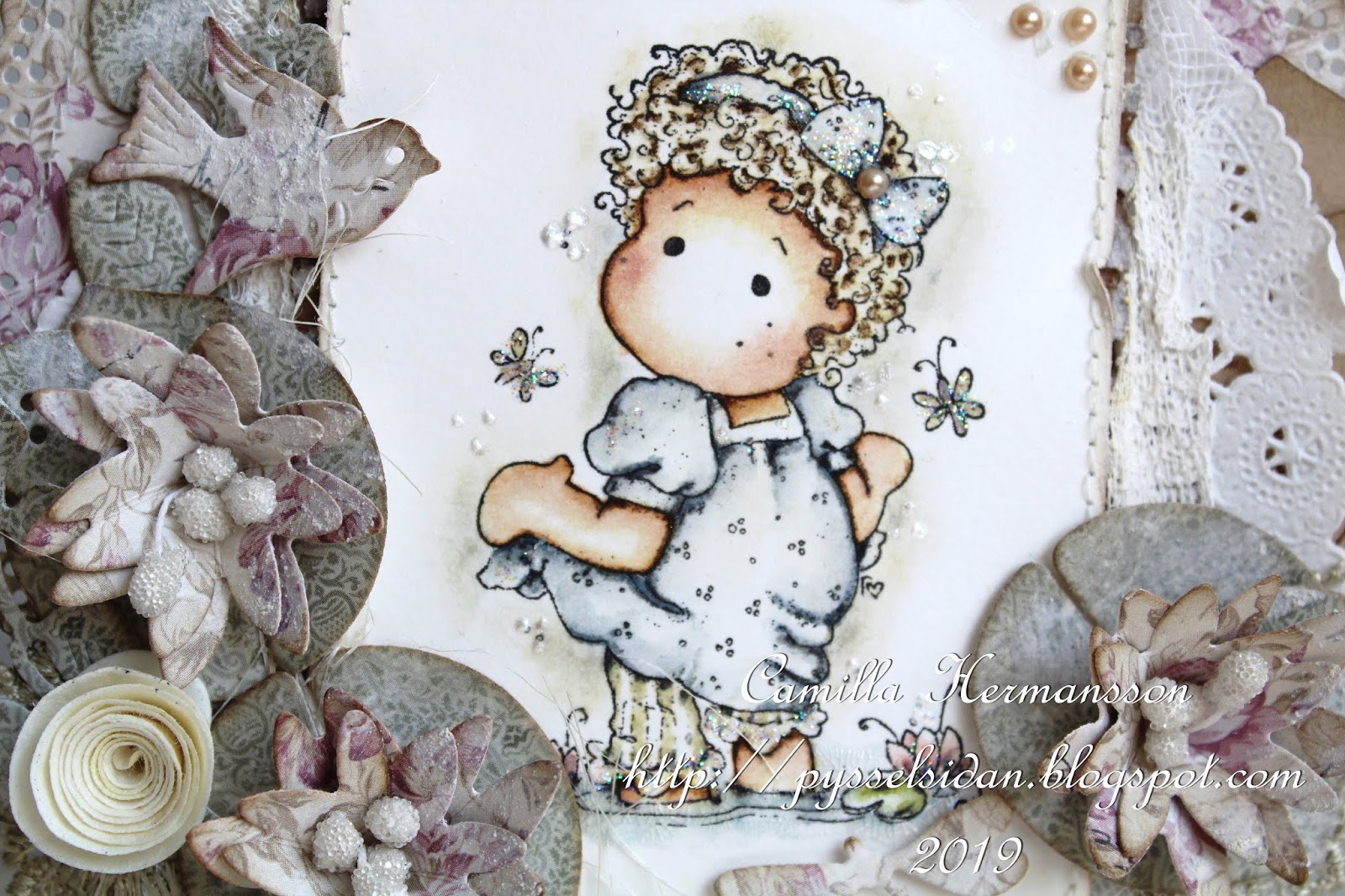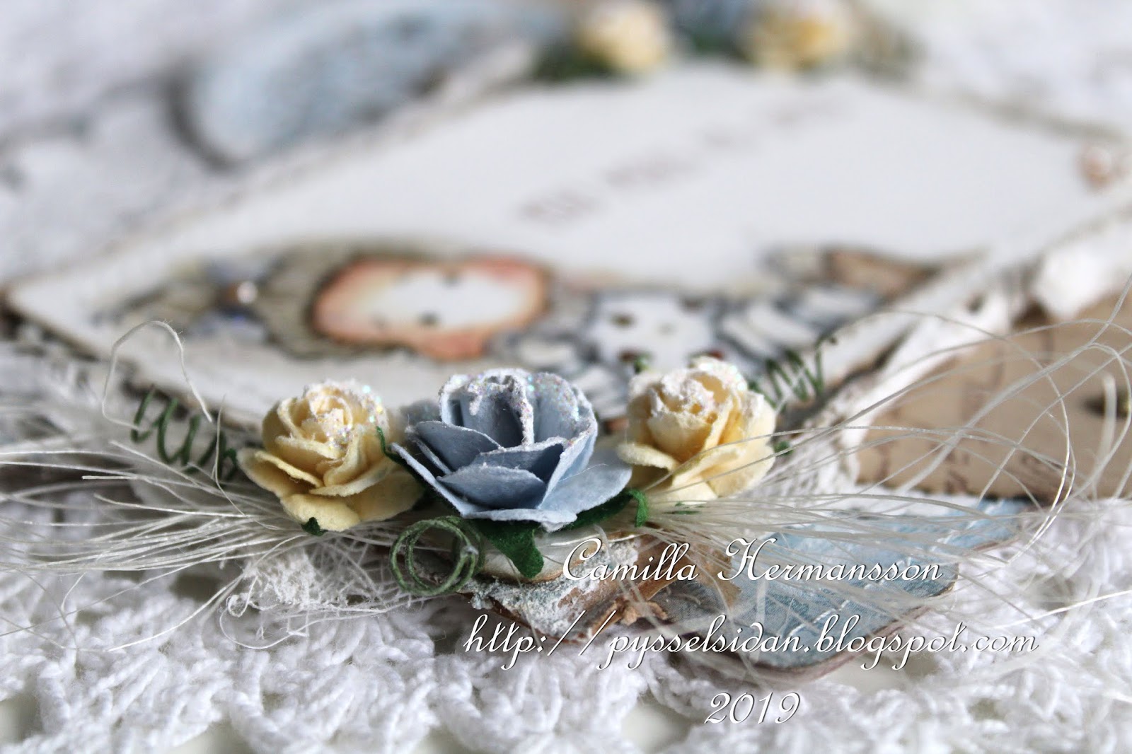 During this I added white doily and some cheese cloth.